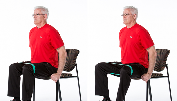 Put your hands on top of your knees and, using your abdominal muscles as much as possible, push down, and hold.